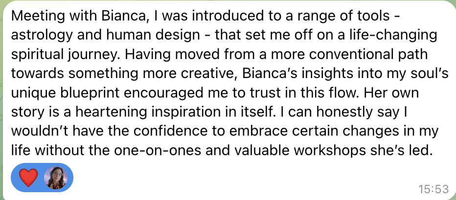 “I now have peace of mind, self-awareness, and a greater sense of peace after working with Bianca.” - Faye